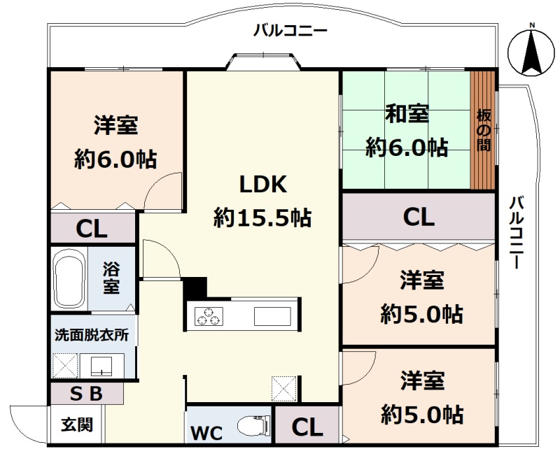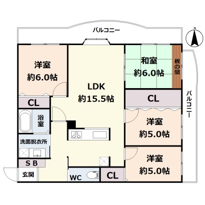 4LDK(81.59m²)└ 3階:LDK15.5帖 和室6帖 洋室6帖 洋室5帖 洋室5帖