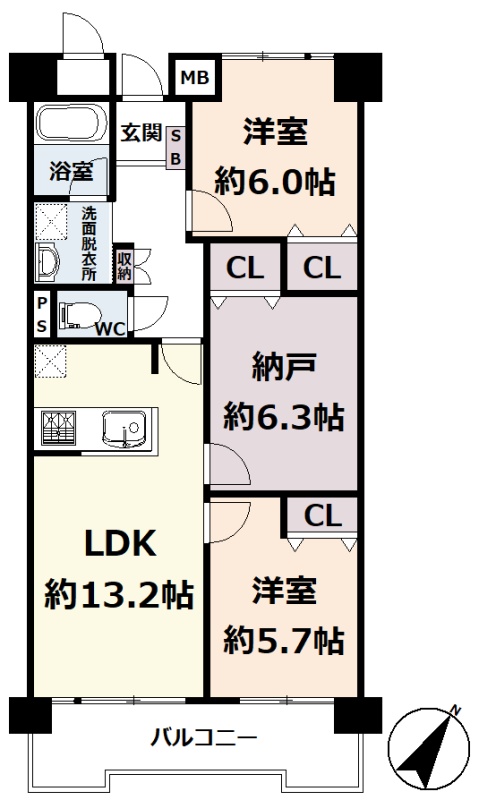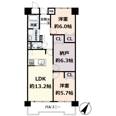2SLDK(71.18m²)└ 12階:LDK13.2帖 洋室6帖 洋室5.7帖 S6.3帖