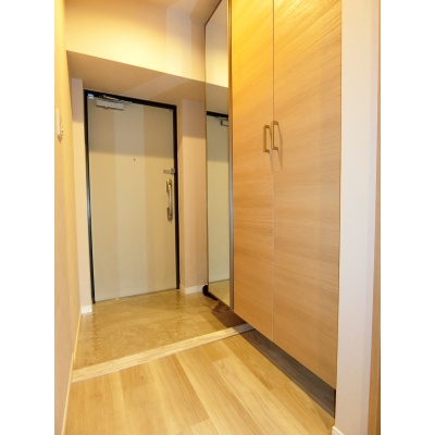 外出前の身だしなみチェックもOK!大きな姿見付きシューズボックス完備◎