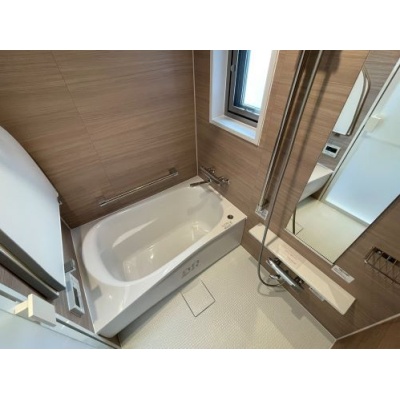温かみのある木目調デザインの浴室。浴室窓で換気効率アップ!