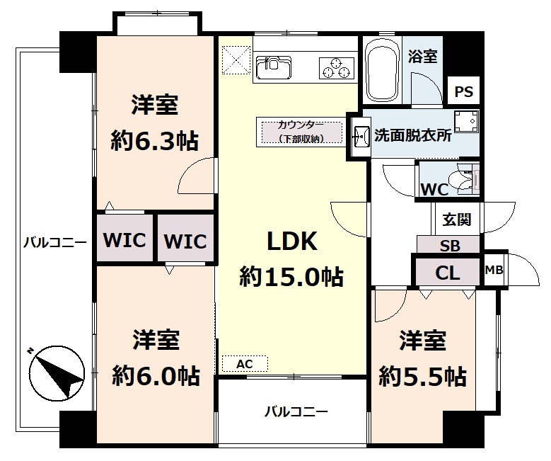 ここに注目!☆令和8年3月内装リフォーム☆都心も郊外も思いのまま。暮らしやすさ重視の新生活にぴったりな3LDKマンション登場!四方角部屋でプライベート感と快適さを両立!全室採光はもちろん、キッチンや浴室など水廻りにも窓があり、風通しの良い間取りになっています☆*約15帖のLDKには新規エアコン設置済み!キッチンにはカウンター収納付き。調理スペースも広く、食器棚要らずで初期費用も抑えられますよ♪*「ちょっと聞いてみたいな…」そんな段階でもOKです!ローンのことや気になる点は、どうぞお気軽にご相談ください☆*