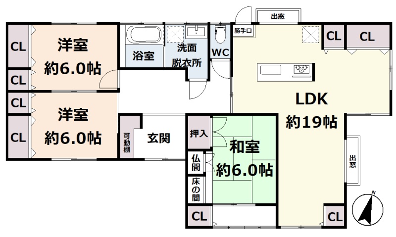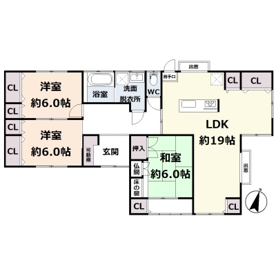 | 間取り | 3LDK1階:LDK19帖 和室6帖 洋室6帖 洋室6帖 |