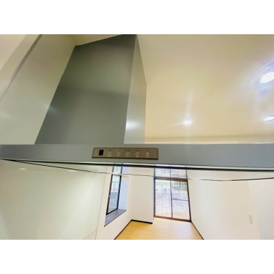シンプルで掃除しやすいスリム型レンジフード付き♪