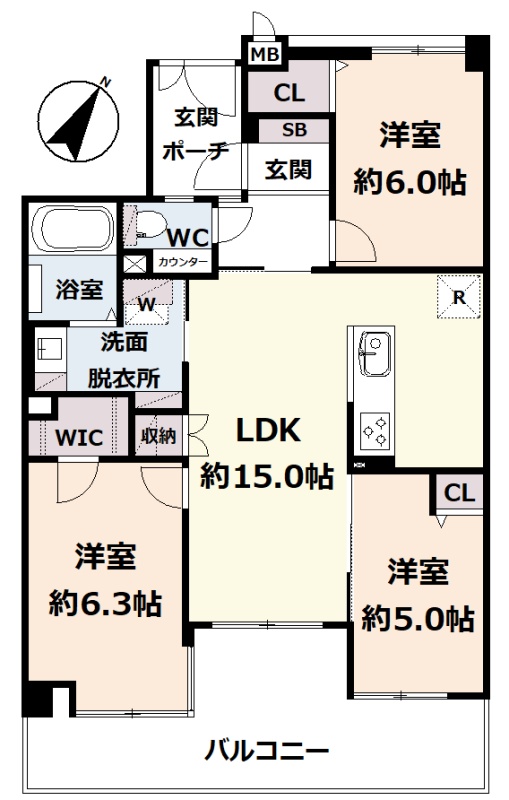3LDK(72.13m²)└ 5階:LDK15帖 洋室6.3帖 洋室6帖 洋室5帖