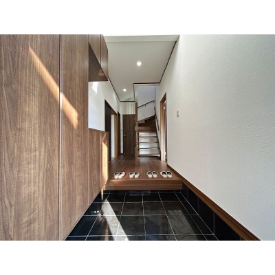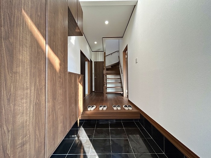 見上げるたびに開放感を感じる、明るくダイナミックな玄関空間!