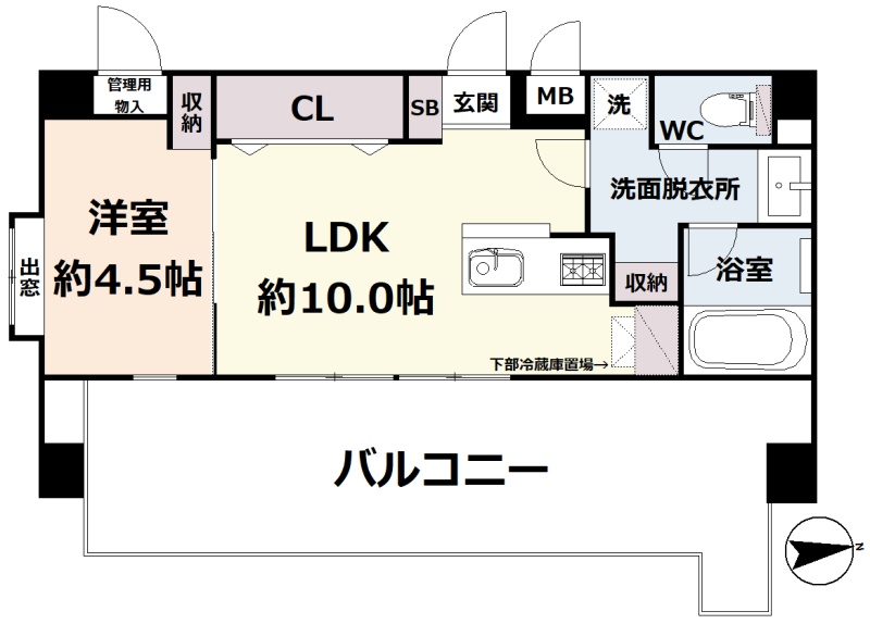 1LDK(32.81m²)└ 10階:LDK10帖 洋室4.5帖