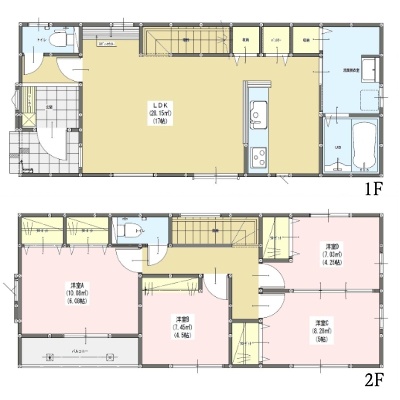 | 間取り | 4LDK1階:LDK18.6帖 / 2階:洋室5.2帖 洋室4.5帖 洋室4.5帖 洋室4帖 |