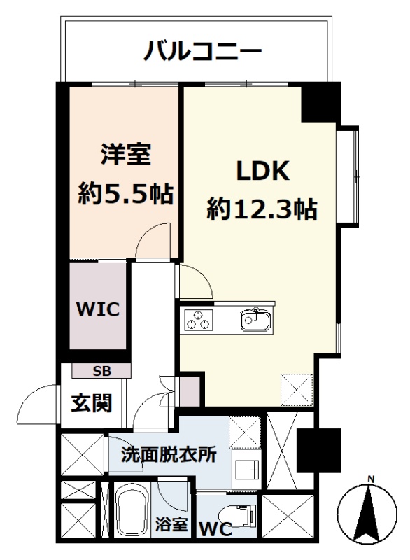 1LDK(52.57m²)└ 3階:LDK12.3帖 洋室5.5帖
