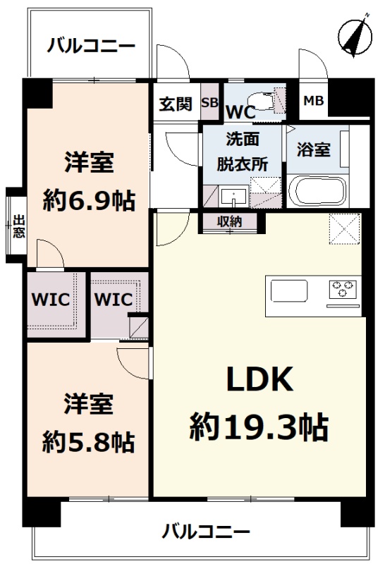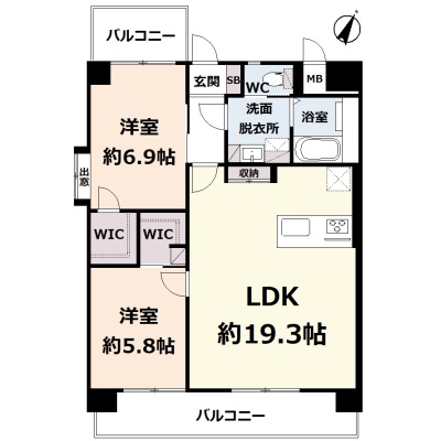 2LDK(67.89m²)└ 3階:LDK19.3帖 洋室6.9帖 洋室5.8帖