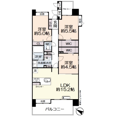 3LDK(70.58m²)└ 10階:LDK15.2帖 洋室5.5帖 洋室5帖 洋室4.5帖