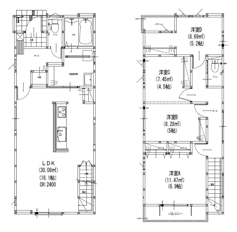 | 間取り | 4LDK1階:LDK18.1帖 / 2階:洋室6.9帖 洋室5.2帖 洋室5帖 洋室4.5帖 |