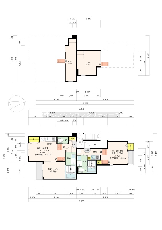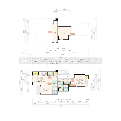 | 面積 | 建物:100.12m² (30.28坪)/ 土地:101.03m² (30.56坪)(公簿)※セットバック済み 専有:最小20.03m² (6.05坪)~最大30.02m² (9.08坪) |