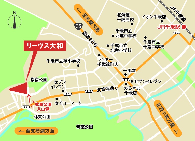 | 交通 | 千歳駅(徒歩30分)道順を見る |