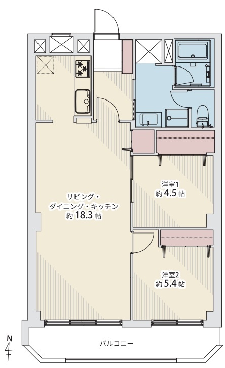 2LDK(64.69m²)└ LDK18.3帖 洋室5.4帖 洋室4.5帖