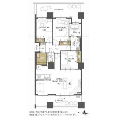 3LDK(80.54m²)└ 洋室6帖 洋室5.5帖 洋室4.5帖 LDK19.5帖