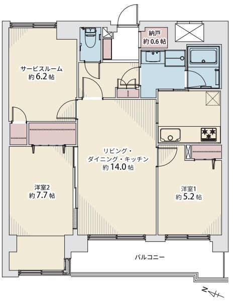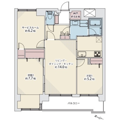 2SLDK(71.89m²)└ LDK14帖 洋室7.7帖 洋室5.2帖 S6.2帖