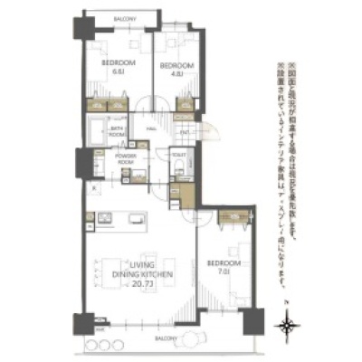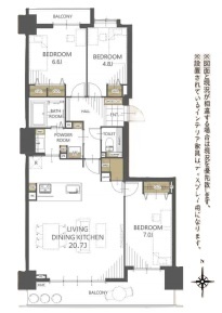 3LDK(88.09m²)└ 洋室7帖 洋室6.6帖 洋室4.8帖 LDK20.7帖