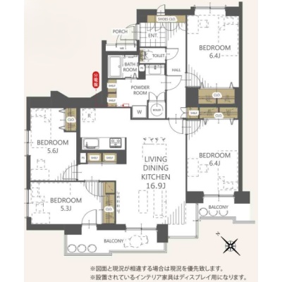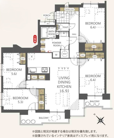 4LDK(97.19m²)└ 洋室6.4帖 洋室6.4帖 洋室5.6帖 洋室5.3帖 LDK16.9帖