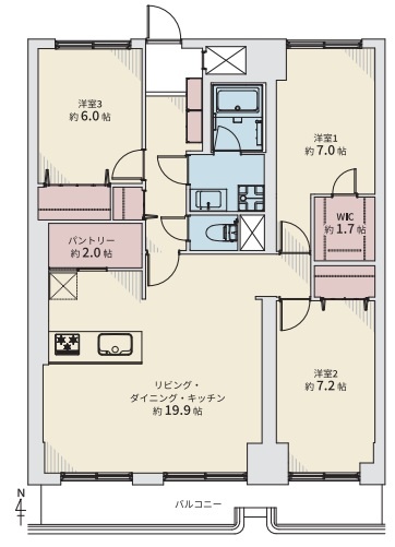 3LDK(94.14m²)└ LDK19.9帖 洋室7.2帖 洋室7帖 洋室6帖