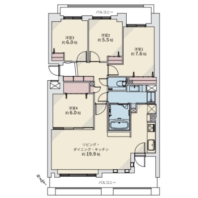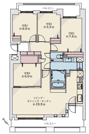 4LDK(98.51m²)└ LDK19.9帖 洋室7.6帖 洋室6帖 洋室6帖 洋室5.5帖