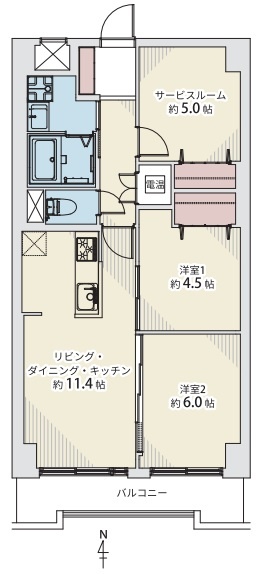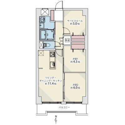 2SLDK(62.7m²)└ LDK11.4帖 洋室6帖 洋室4.5帖 S5帖