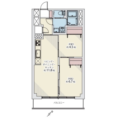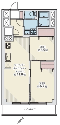 2LDK(56m²)└ LDK11.8帖 洋室6.7帖 洋室4.5帖