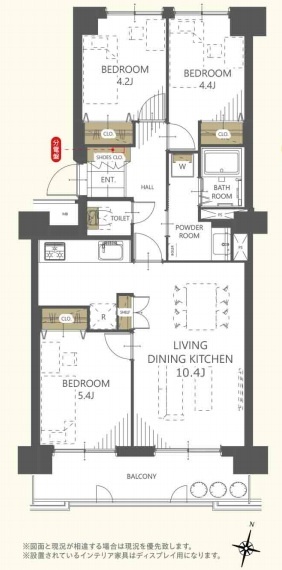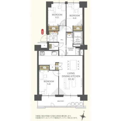 3LDK(66.04m²)└ 洋室5.4帖 洋室4.4帖 洋室4.2帖 LDK10.4帖