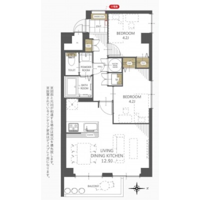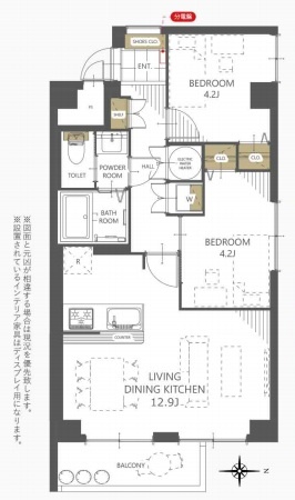 2LDK(51.82m²)└ 洋室4.2帖 洋室4.2帖 LDK12.9帖