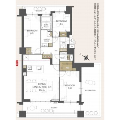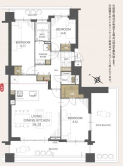 3LDK(76.55m²)└ 洋室6.7帖 洋室6.5帖 洋室4.4帖 LDK16.3帖