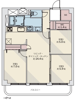 3LDK(70.85m²)└ LDK14.4帖 洋室7帖 洋室5.9帖 洋室5帖