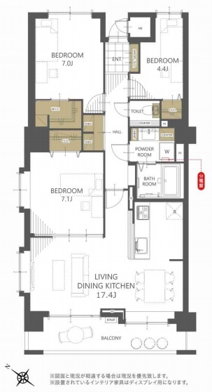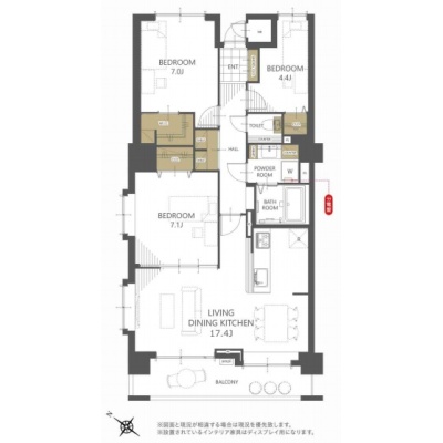 3LDK(84.37m²)└ 洋室7.1帖 洋室7帖 洋室4.4帖 LDK17.4帖