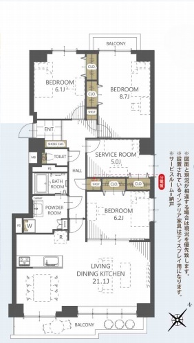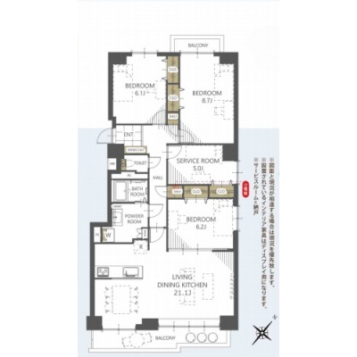 3SLDK(102.73m²)└ 洋室8.7帖 洋室6.2帖 洋室6.1帖 S5帖 LDK21.1帖