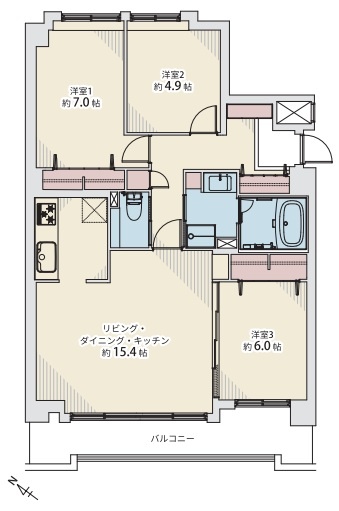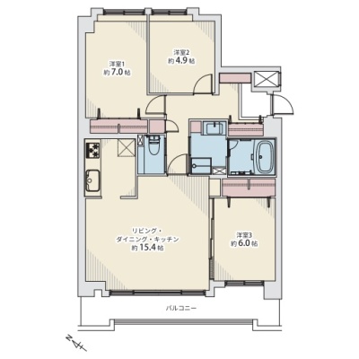 3LDK(75.4m²)└ LDK15.4帖 洋室7帖 洋室6帖 洋室4.9帖