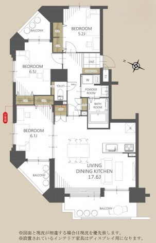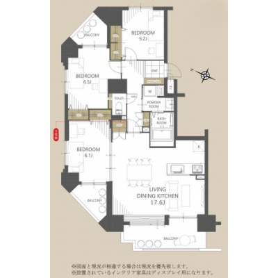 3LDK(79.95m²)└ 洋室6.5帖 洋室6.1帖 洋室5.2帖 LDK17.6帖