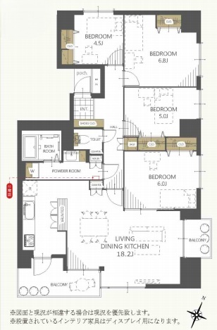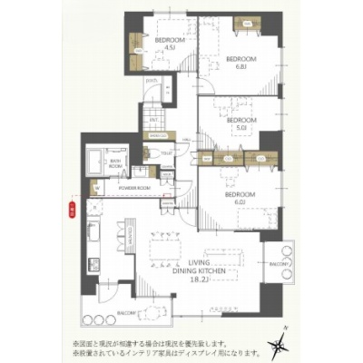 4LDK(95.2m²)└ 洋室6.8帖 洋室6帖 洋室5帖 洋室4.5帖 LDK18.2帖