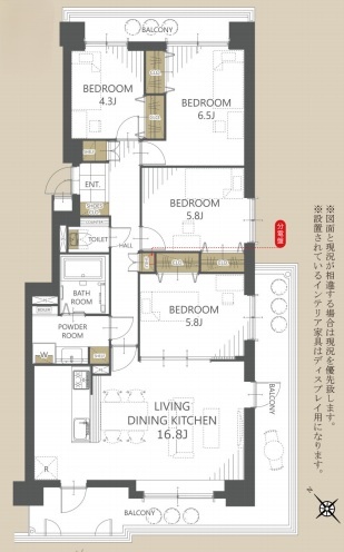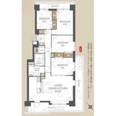 4LDK(90.18m²)└ 洋室6.5帖 洋室5.8帖 洋室5.8帖 洋室4.3帖 洋室16.8帖