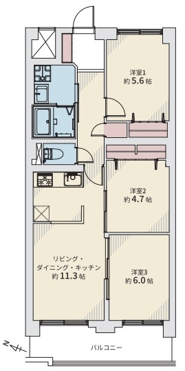 3LDK(64.71m²)└ LDK11.3帖 洋室6帖 洋室5.6帖 洋室4.7帖