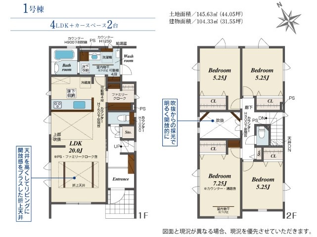 ここに注目!LDKを明るく開放的に演出する吹抜を採用! こだわりのデザイン・間取りの2邸が誕生