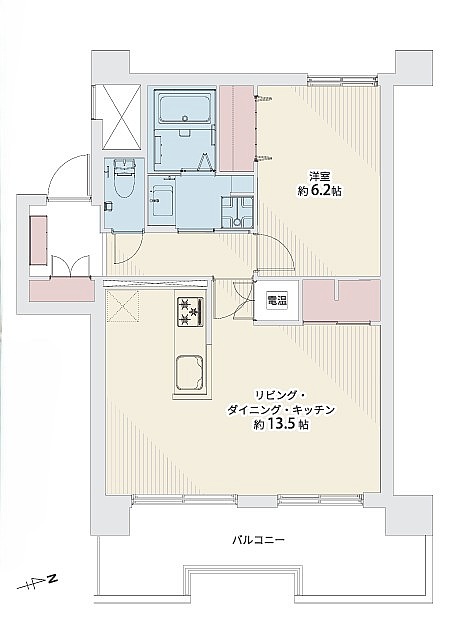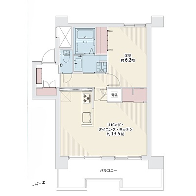 1LDK(52.6m²)└ LDK13.5帖 洋室6.2帖