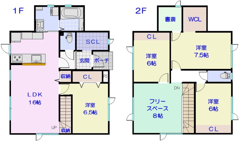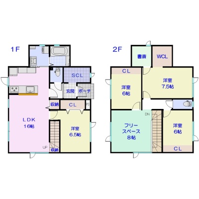 | 間取り | 4LDK1階:LDK16帖 洋室6.5帖 / 2階:洋室7.5帖 洋室6帖 洋室6帖 その他8帖 |