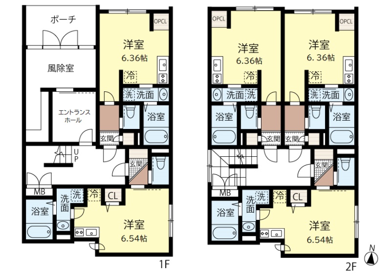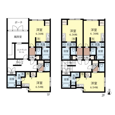 | 面積 | 建物:253.52m² (76.68坪)/ 土地:85.99m² (26.01坪)(公簿) 専有:最小18.43m² (5.57坪)~最大19.39m² (5.86坪) |
