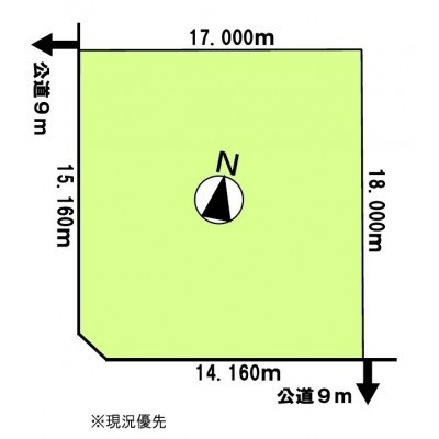 総区画数-/- 接道状況 角地 - 南側幅9.00mの公道に14.10m接道