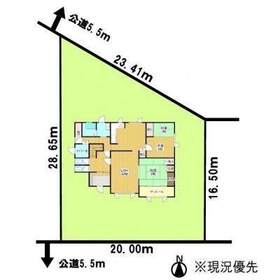 - 北側幅5.50mの公道に23.40m接道