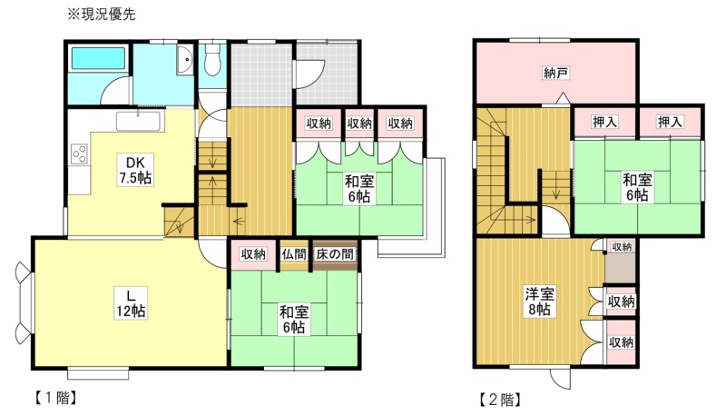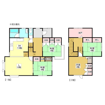 引渡し 即時 現況 空き 取引態様 仲介 物件No 仲介手数料概算 不動産会社へお問合せください 設備・特徴 備考 ・令和7年固定資産税等年税額:年47,900円 ・売却理由:相続不使用・契約不適合責任免責 ・建物本体及び付帯設備一切は修理修繕を行わない現状渡しとします。 ・土地については、整地や造成、樹木伐採等を一切行わない現状渡しとします。 ・境界非明示 ・確認申請 有 ・完了検査 有 ・落雪 無 ※物件状況については必ず現地ご確認下さい。 ※現況雨漏り有り、未修理のまま現状渡しとなります。 学区色がついているアイコンをクリックすると、本物件までの道順を見ることができます。