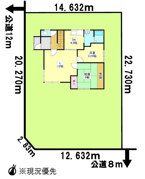 総区画数-/- 接道状況 角地 - 西側幅12.00mの公道に20.27m接道
