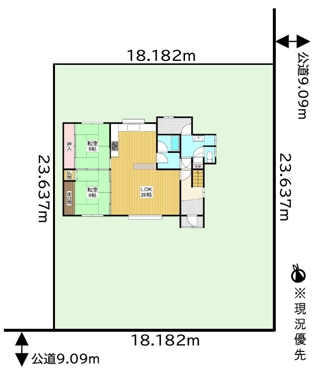 - 東側幅9.09mの公道に23.63m接道