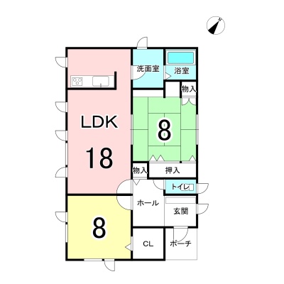 | 間取り | 2LDK1階:LDK18帖 洋室8帖 和室8帖 |
