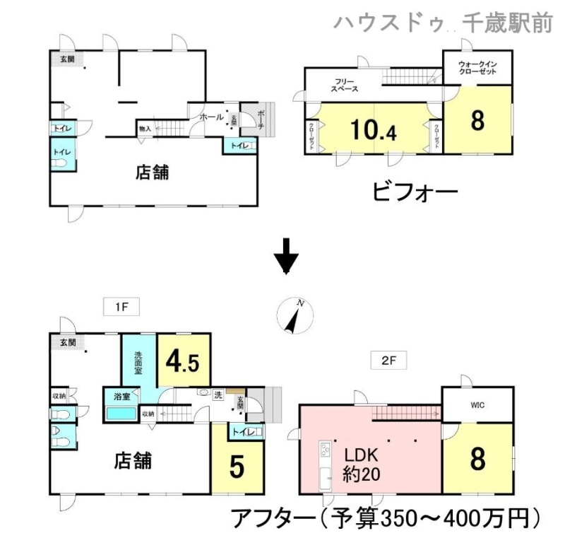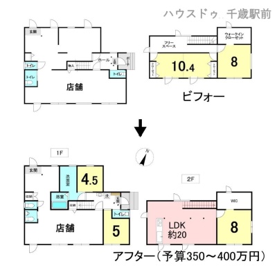 ビフォーは現在営業中の整骨院の間取り。 アフターは住居兼店舗に変更した場合のイメージ画像となります。