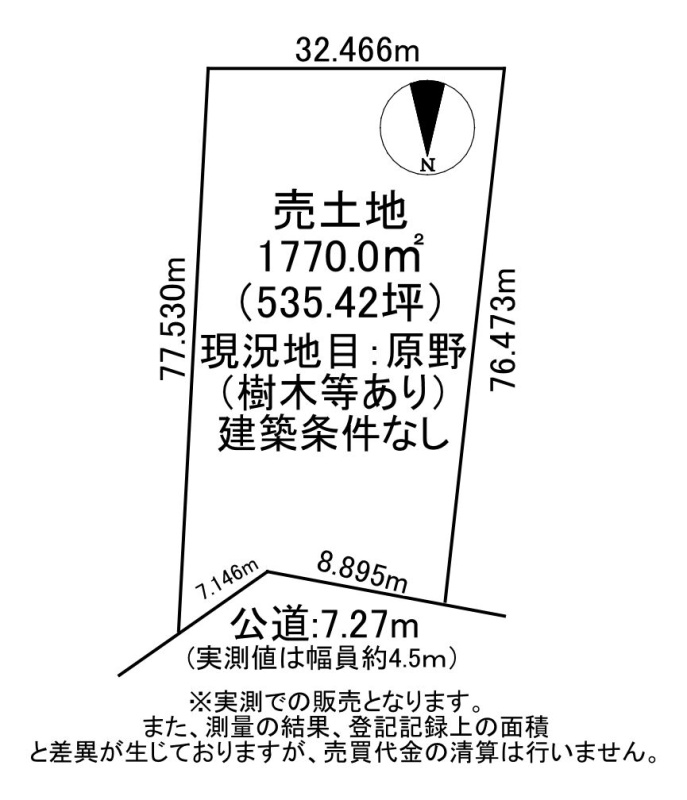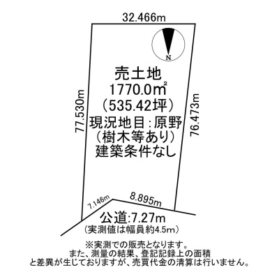 | 土地面積 | 1770m² (535.42坪)(実測) |