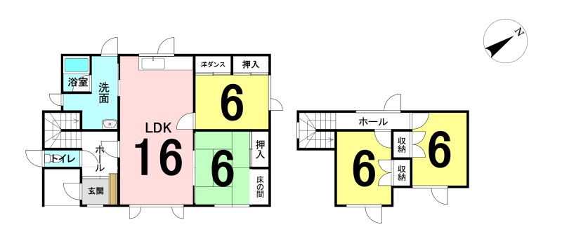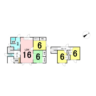 | 間取り | 4LDK1階:LDK16帖 洋室6帖 和室6帖 / 2階:洋室6帖 洋室6帖 |
